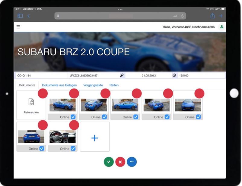 - Alle Kunden mit zur Zeit im Autohaus eingelagerten Reifen mit Adress- und Kontaktdaten.