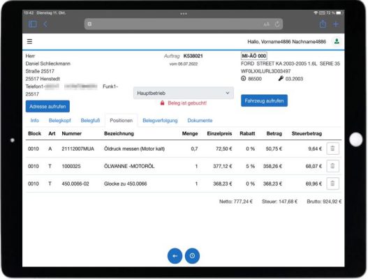 - Alle Kunden mit fakturierten Fahrzeugrechnungen im Zeitraum von…bis.